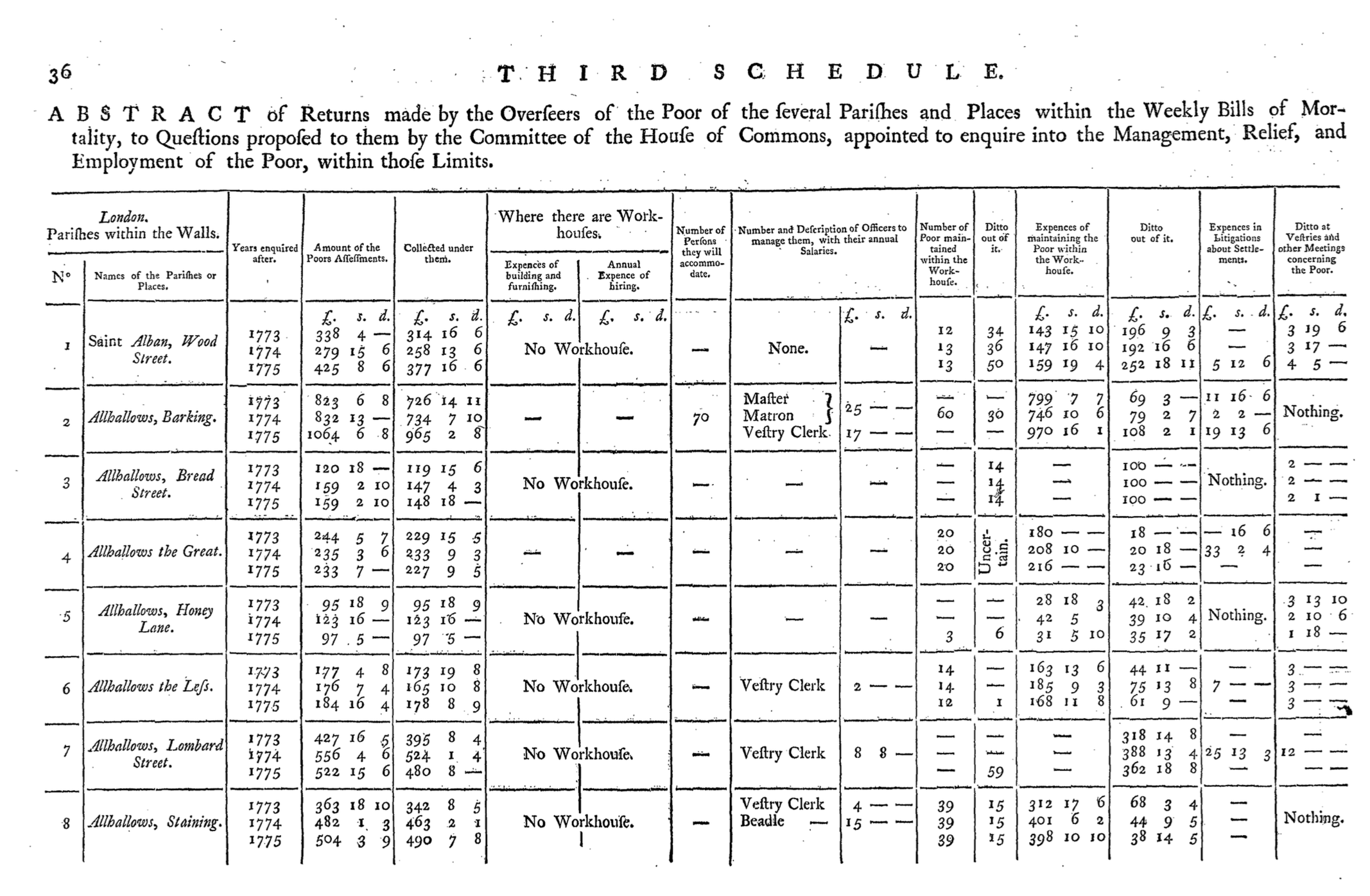 House of Commons, Parliament, Great Britain. “Abstracts of the returns made by the overseers of the poor, in pursuance of an act passed in the sixteenth year of His Present Majesty’s reign…” London, 1777.